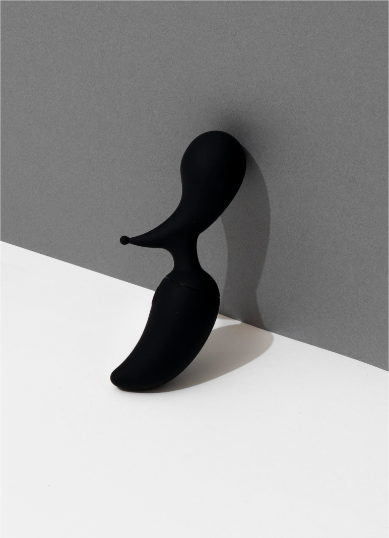 ピンポイント刺激とズンズン電マ刺激の両方を楽しめる勾玉型の可愛いデンマです。